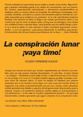 Estará en la calle en menos de un mes (13 de julio), según me dice Laetoli, la editorial que tan amablemente ha acogido la obra. Ahora el libro está en prensa (es el décimo de la colección «¡Vaya timo!»), así que la cosa marcha. como debe. En cuanto tenga uno en la mano daré más detalles, por ahora quedémonos con la portada y la contraportada.